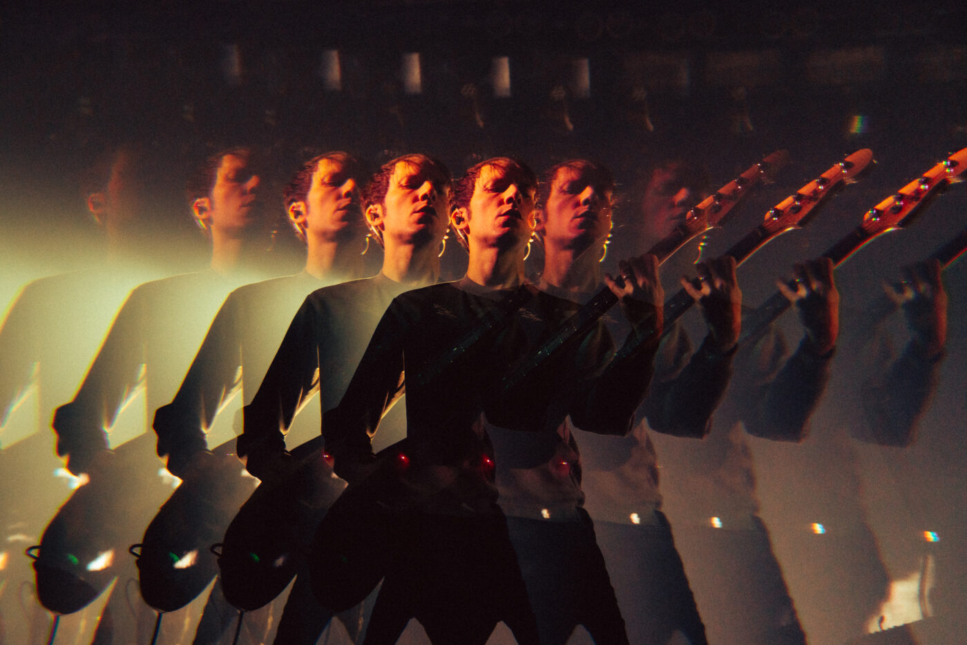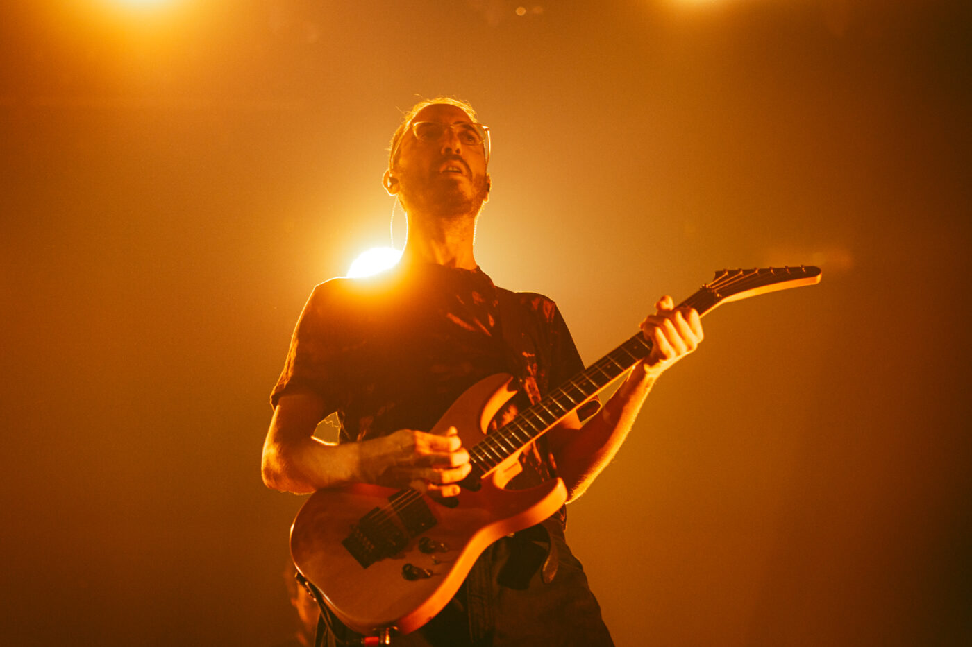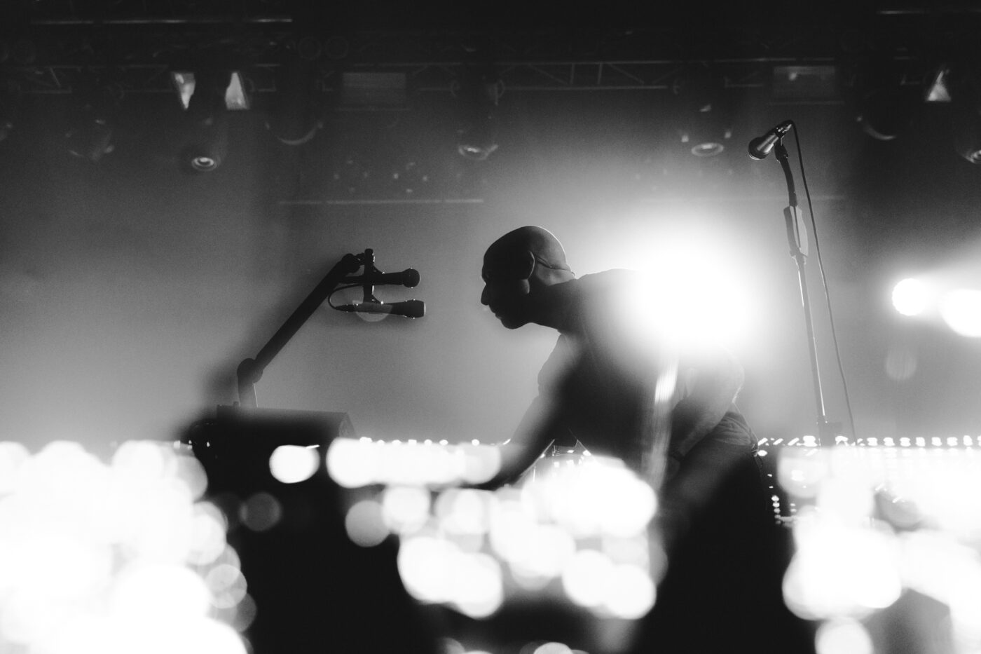 I sei componenti della band prendono posto sul palco e veniamo ipnotizzati da questa scenografia incorniciata da un cerchio di luci che ricorda un po’ il varco di luce o la navicella spaziale che ci porta avanti e indietro fra gli album della loro discografia. Sono in compagnia di alcuni fedelissimi, paladini dei primi lavori: Il sorprendente album d’esordio de I Cani, Glamour fino al penultimo (ormai datato) Aurora. Io, voce fuori dal coro, sono lì, sì anche per qualche storico vecchio brano, ma principalmente per sentire dal vivo Post Mortem, ultimo album uscito a sorpresa lo scorso aprile, che con 2-3 tracce ben assestate in pancia, mi ha stregato.
