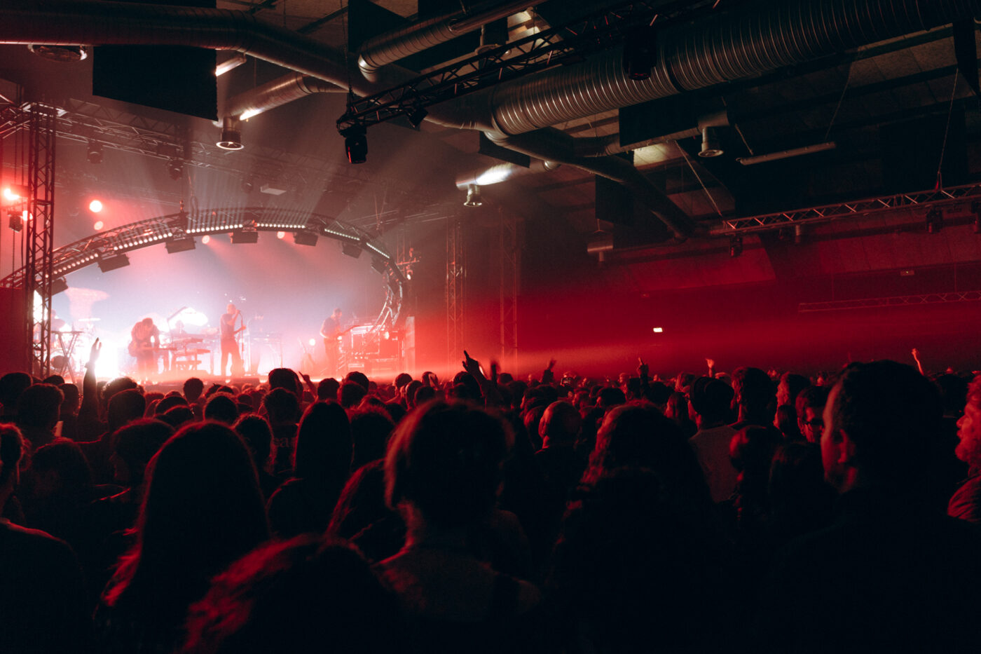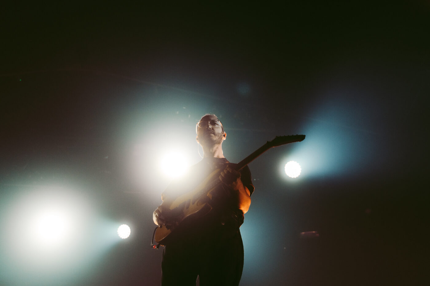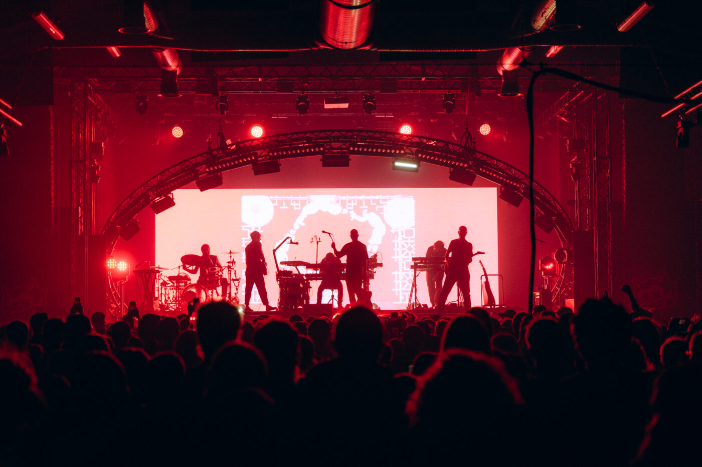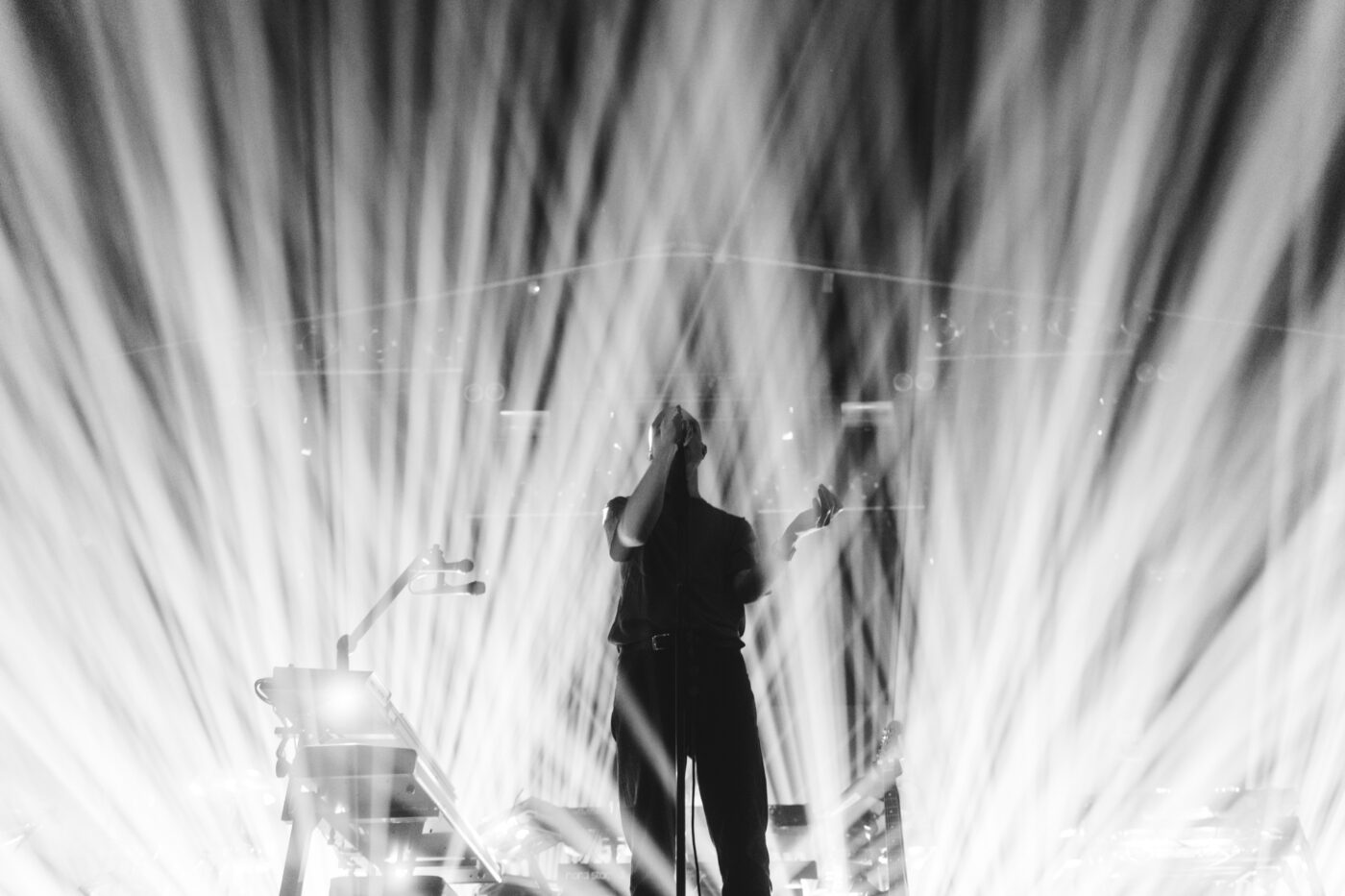 I sei componenti della band prendono posto sul palco e veniamo ipnotizzati da questa scenografia incorniciata da un cerchio di luci che ricorda un po’ il varco di luce o la navicella spaziale che ci porta avanti e indietro fra gli album della loro discografia. Sono in compagnia di alcuni fedelissimi, paladini dei primi lavori: Il sorprendente album d’esordio de I Cani, Glamour fino al penultimo (ormai datato) Aurora. Io, voce fuori dal coro, sono lì, sì anche per qualche storico vecchio brano, ma principalmente per sentire dal vivo Post Mortem, ultimo album uscito a sorpresa lo scorso aprile, che con 2-3 tracce ben assestate in pancia, mi ha stregato.