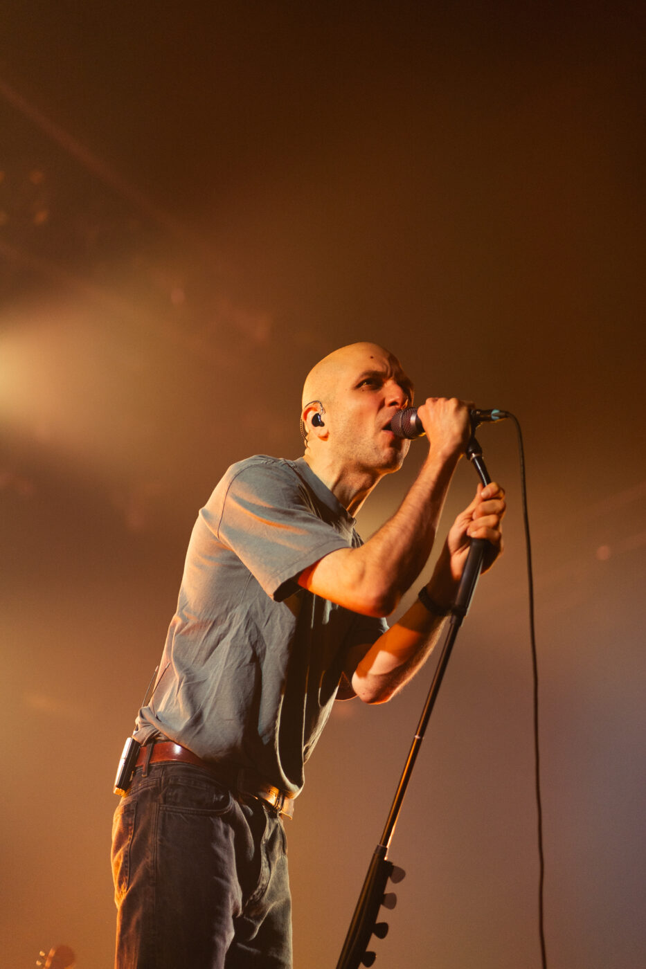 Non posso non osservare fin da subito una netta distinzione fra i brani della setlist selezionati dal passato, energici, ballerini e frizzanti – penso a Le coppie o Post-punk – e il tono, invece, più profondo, cupo e quasi rassegnato del nuovo disco – cito Io, Carbone, Felice e Un’altra onda (unico spiraglio finale di speranza).