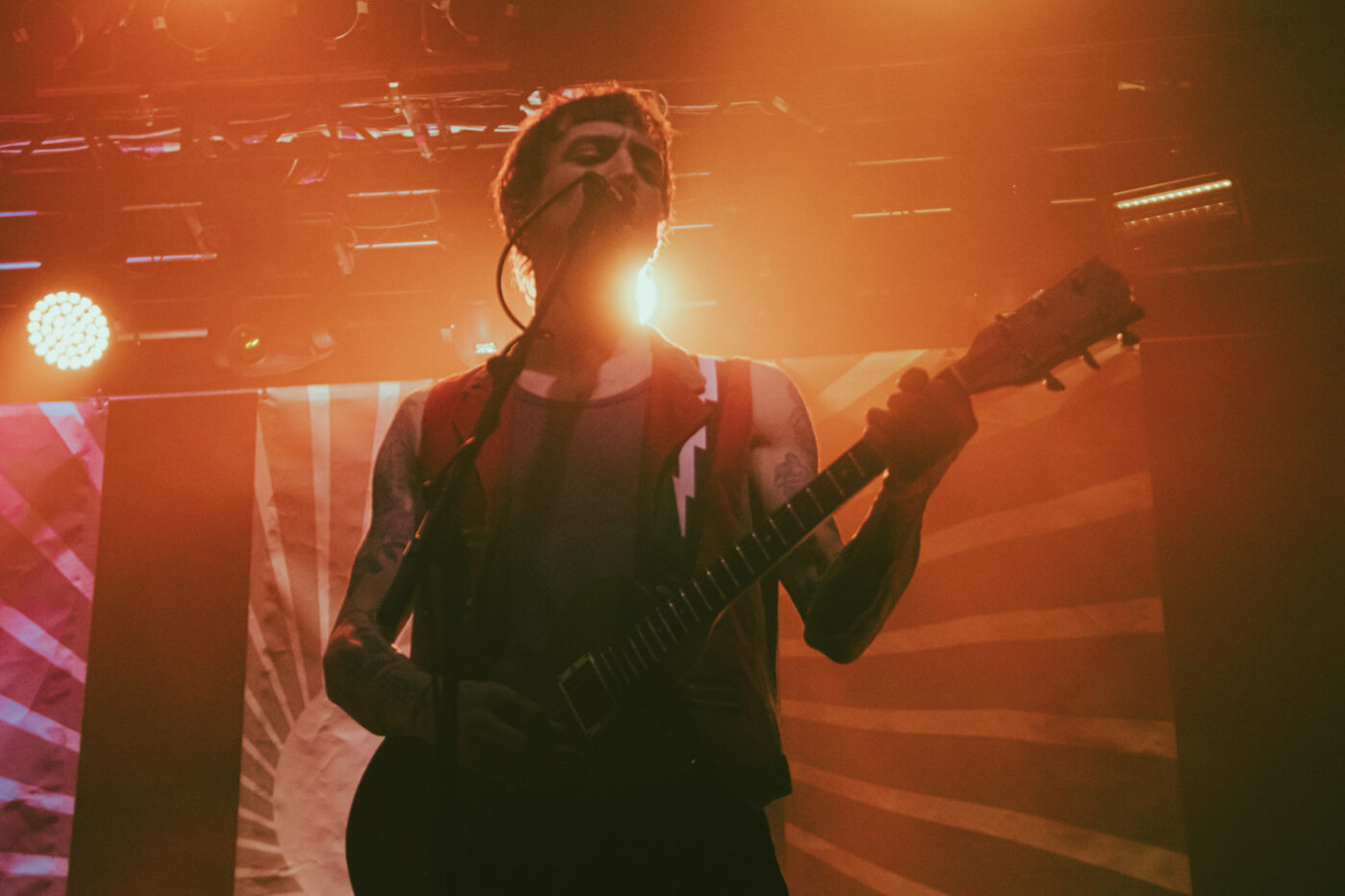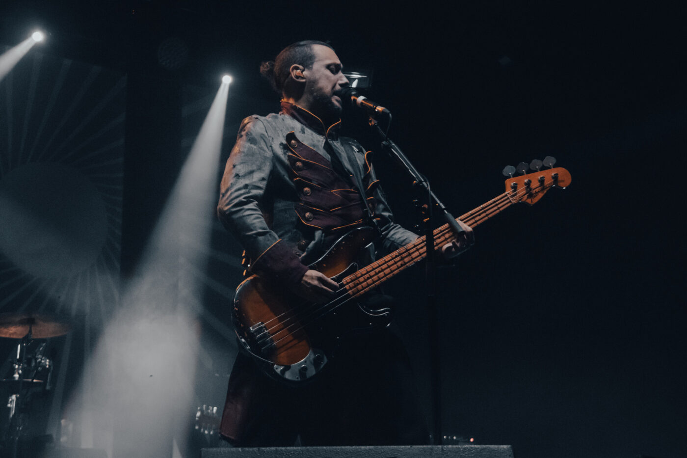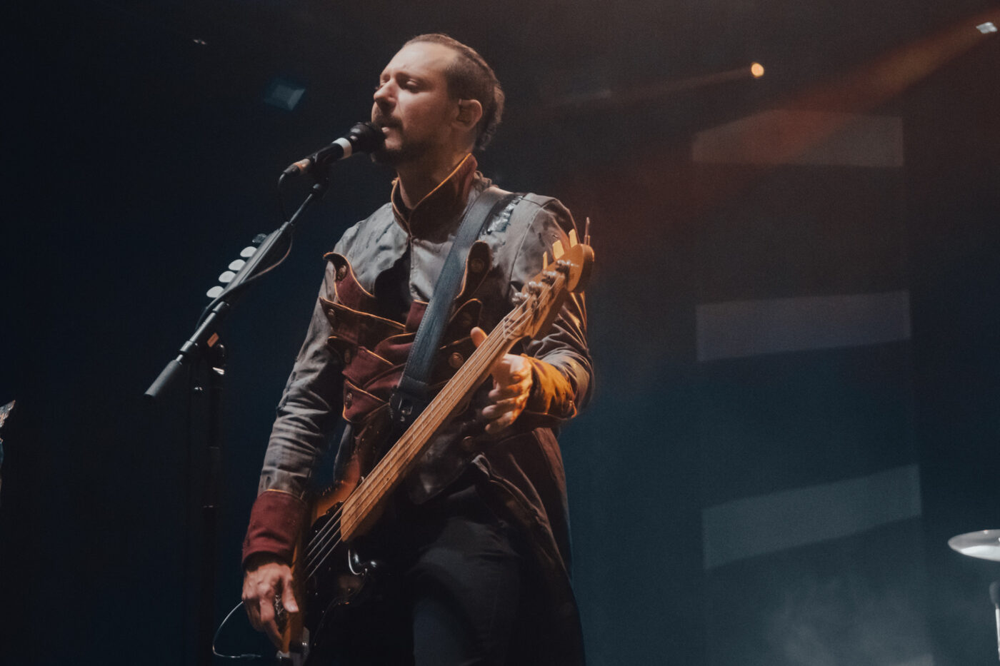 Sono sembrati tutti in forma come al solito, a sudare sotto le nuove giacche napoleoniche immaginate e realizzate dallo stylist Nicolò “Nick” Cerioni; tranne Michelino che si presenta in canottiera, comodo per assestare le sue pacche sul rullante. Fede partecipa alla performance con il corpo, con le espressioni del volto, con tutto sé stesso (compreso tutto il suo sudore) e quando mi regala l’assolo di Palude, sono davvero una persona felice. Divi rimane una delle migliori voci del rock italiano attuale: incisiva, vigorosa, in qualche modo ruvida e limpida allo stesso tempo. Non smette di concedersi – giustamente – le sue buone abitudini da rockstar: indìce i poghi, raggiunge il pubblico e si siede (fino a stendersi) tra di noi, cantando una versione acustica di Vestirsi Male, sventola la bandiera con il sol levante di Aurora Popolale e surfa sulla folla. In un’intervista recente ho sentito Michele Esposito definire il più grande pregio di Divi essere “una persona di grande cuore” e ce ne accorgiamo dalla generosità con cui parla degli altri, dagli interventi rivolti al pubblico, al fervente orgoglio con cui presenta i suoi compagni di band, fino alla chiusa in cui spende più di una buona parola nei confronti, non solo della squadra tecnici del tour, ma anche dei Circus Punk in apertura, commentando quanto sia importante per lui fare luce sulle nuove leve, sui tanti promettenti talenti della nuova generazione.