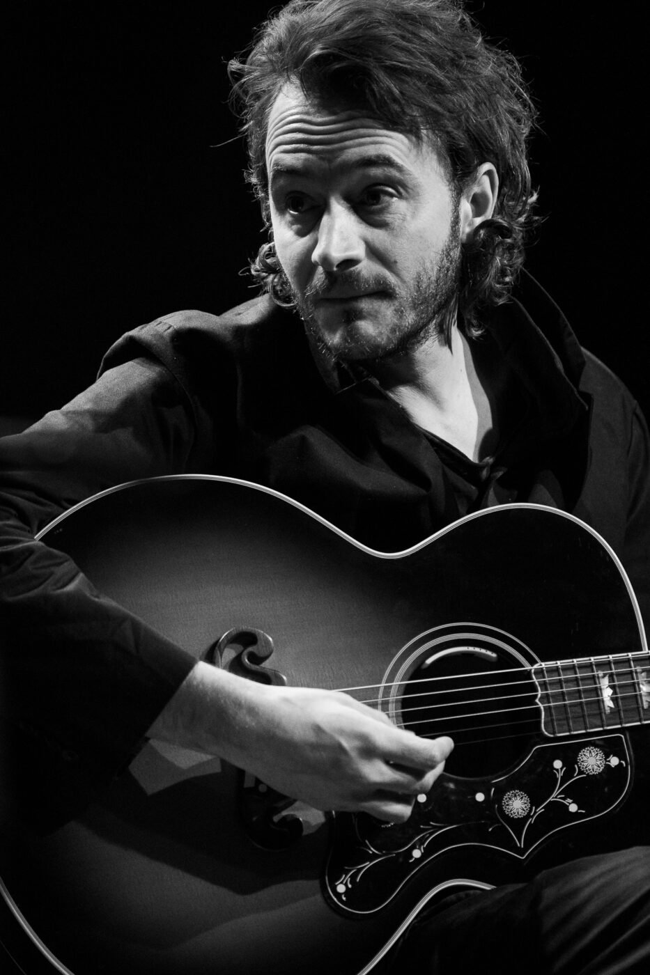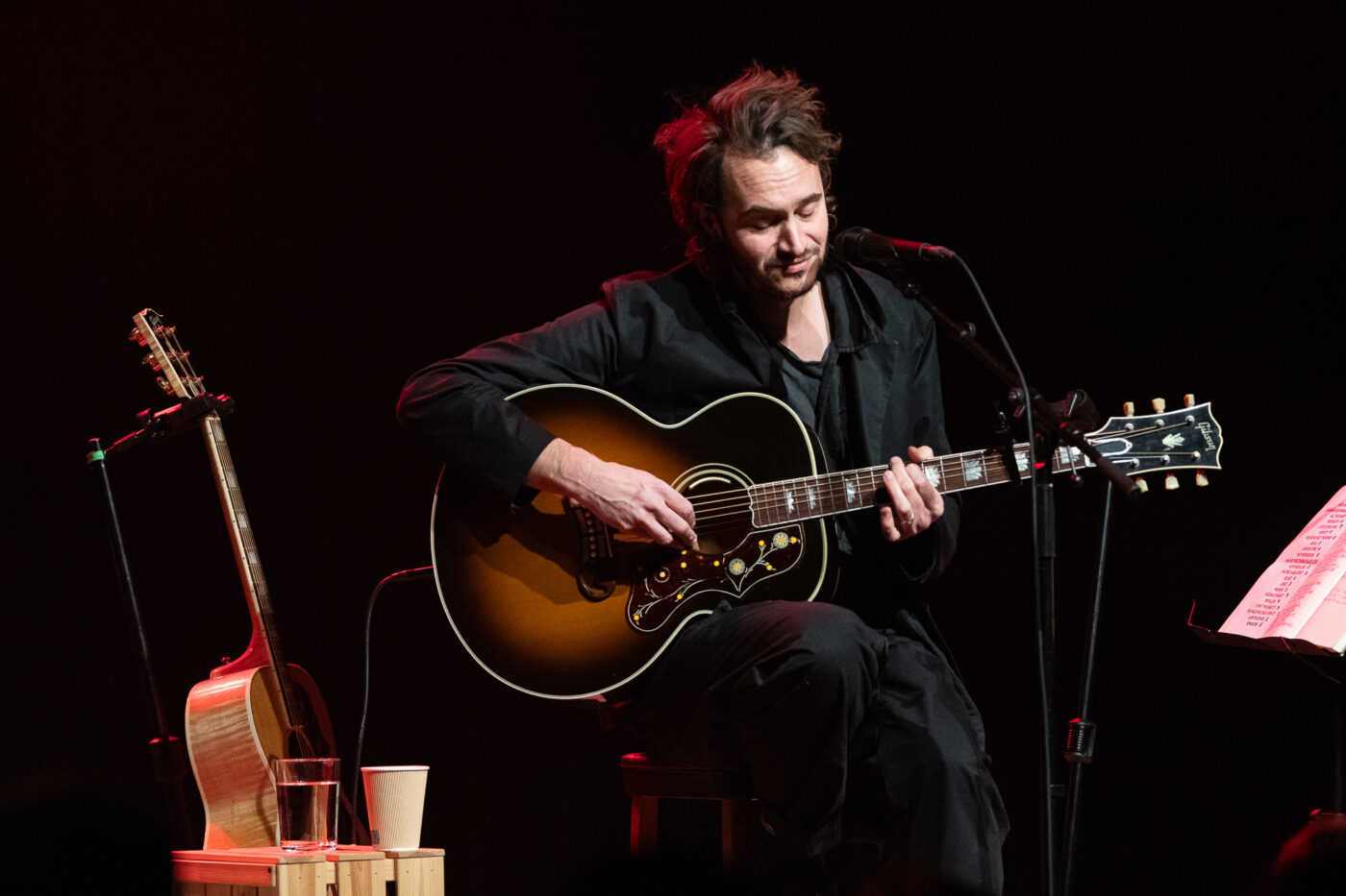 In the heart of Copenhagen there’s a beautiful art deco venue called Hotel Cecil. Here, on a crispy Spring night, we’re welcomed by the warmth of the golden lights and green velvets that adorn an intimate concert room. Tonight, a couple of hundred of people are going to experience Tom Smith of Editors presenting his first solo album There Is Nothing in the Dark That Isn’t There in the Light and a handpicked selection of Editors covers.