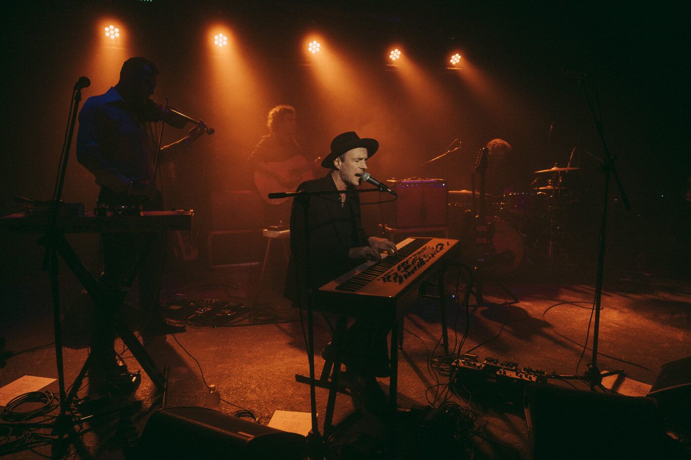L’opener non si presenta, pare per motivi di salute, e il locale gremito aspetta in trepidazione da davvero tanto tempo, quando sulle 22 i cinque membri fanno il loro ingresso e Finn Andrews, completo scuro e capello a tesa larga, prende posizione alla tastiera sfoggiando un sorriso emozionato.