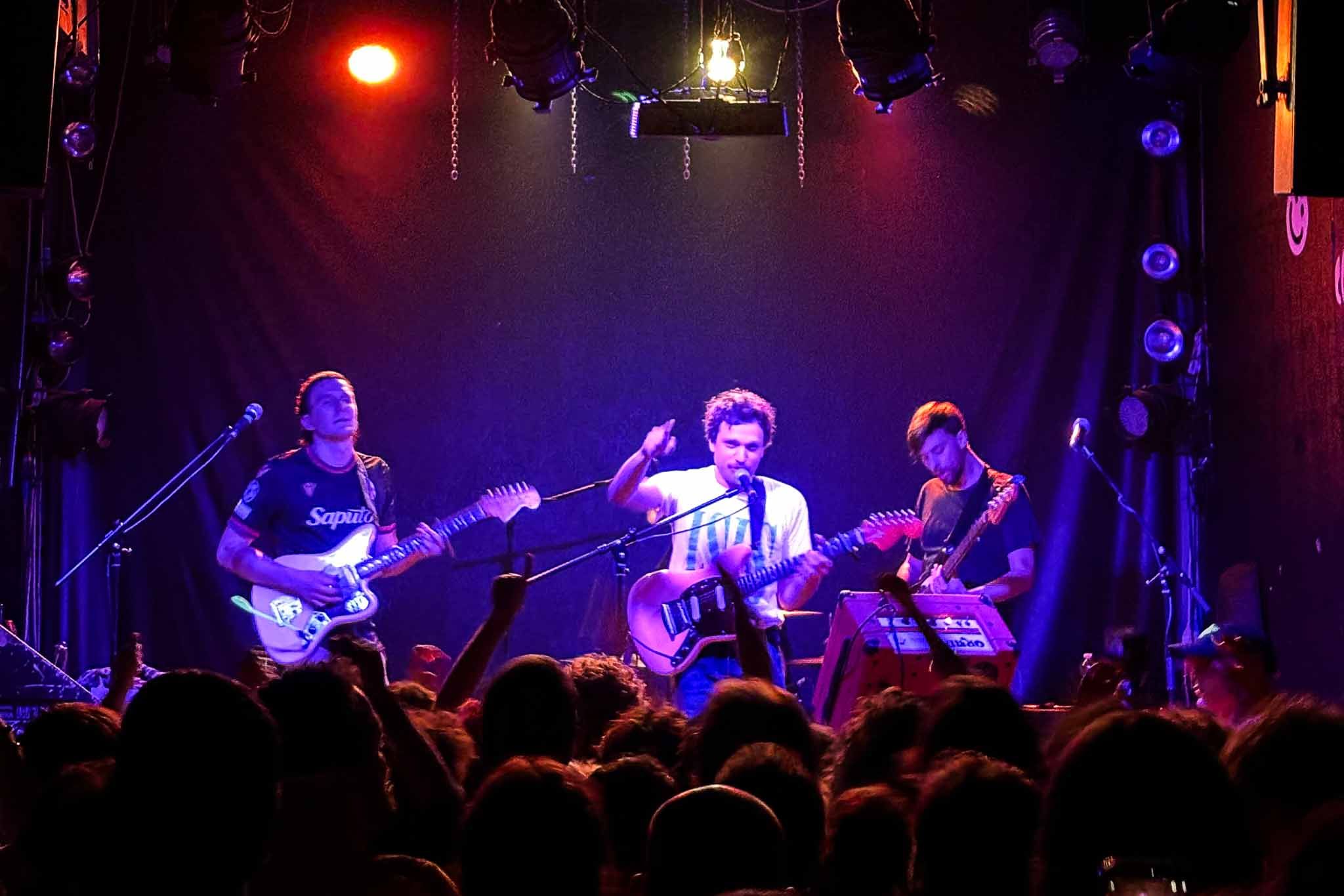 Alle 22:50 i quattro ragazzi headliner fanno il loro ingresso sul palco. Il clima è intimo e coinvolgente, quasi una reunion tra amici. Si parte con la setlist che tutti aspettano: il primo album, suonato rigorosamente nell’ordine originale, brano dopo brano, con una dedizione che ci ricorda la stessa passione con cui è stato scritto. Le tracce del primo disco, che nel 2019 hanno segnato un piccolo grande punto di riferimento per l’indie italiano, sono accolte dal pubblico come inni personali. Chi salta sulle note di Condizioni Meteo Critiche e chi limona su quelle di Krypton. Ogni singolo passaggio è un tributo a un’esperienza condivisa. Risulta estremamente interessante come, attraverso il racconto della vita di alcuni noti pazzi di Milano, questi ragazzi arrivino a descrivere i drammi di una generazione, i timori, le difficoltà e a parlare, quindi, di ciò che interessa invece ognuno di noi.