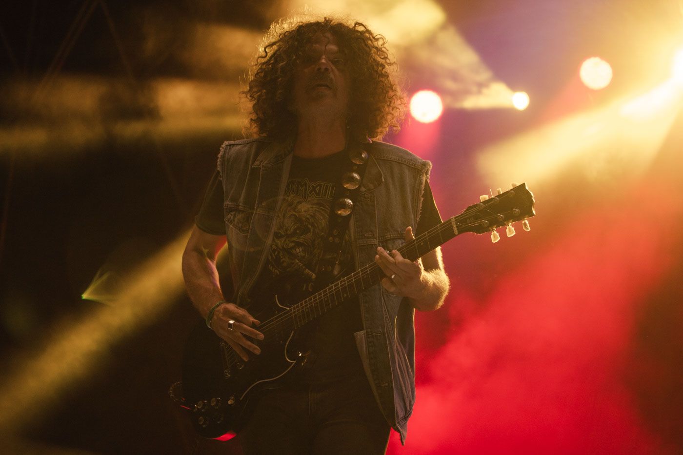 Mentre la sera cala sulla piazza, e le luci di scena diventano sempre più vive, sullo sfondo appare la gigante bocca con la scritta Dirty Honey, che non si fanno attendere dal pubblico, anzi il frontman Marc Labelle saluta la città con energia e in un italiano talmente perfetto da far sospettare la sostituzione con un artista del luogo. Dubbio subito svanito appena la sua voce cerca di infrangere il muro del suono con un acuto. L’esibizione è un’ora e un quarto di rock onesto, puro, senza occhiolini strizzati ad altri generi, direttamente dagli Stati Uniti, o meglio dalla California, come non si stanca mai di dire Labelle. Il gruppo è relativamente giovane, nato nel 2017 e con solo un EP e un album registrati in studio, eppure ha una capacità di stare sul palco che può metterli sul piano di altri con molta più esperienza. Tra suoni di chitarra distorta, John Notto e le profndità del basso di Justin Smolian che si muovono da tarantolati sotto i kick complici di Jaydon Bean, senza contare Labelle che scende tra la folla, sentiamo prendere vita le canzoni del loro album Dirty Honey uscito nel 2021, tra cui California Dreamin’ e Another Last Time che accendono la miccia per il fuoco che arriverà dopo: i Wolfmother.