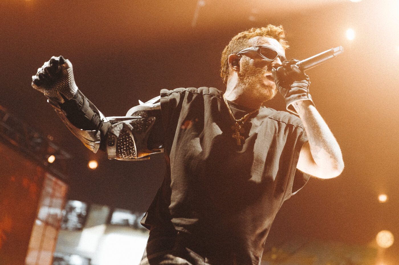 After the two opening songs on what was called Stage B, Carrion and Prey (one of my favorites),ended, the curtain finally fell and the main stage itself was unveiled. A metal bridge submerged from the ceiling to connect the B stage to the big stage, making a catwalk that was often used throughout the set for pyro set pieces. We then kicked into Glitch from the latest album Darker Still. Winston, a commanding and energetic stage presence as always never let up from the start of the gig.