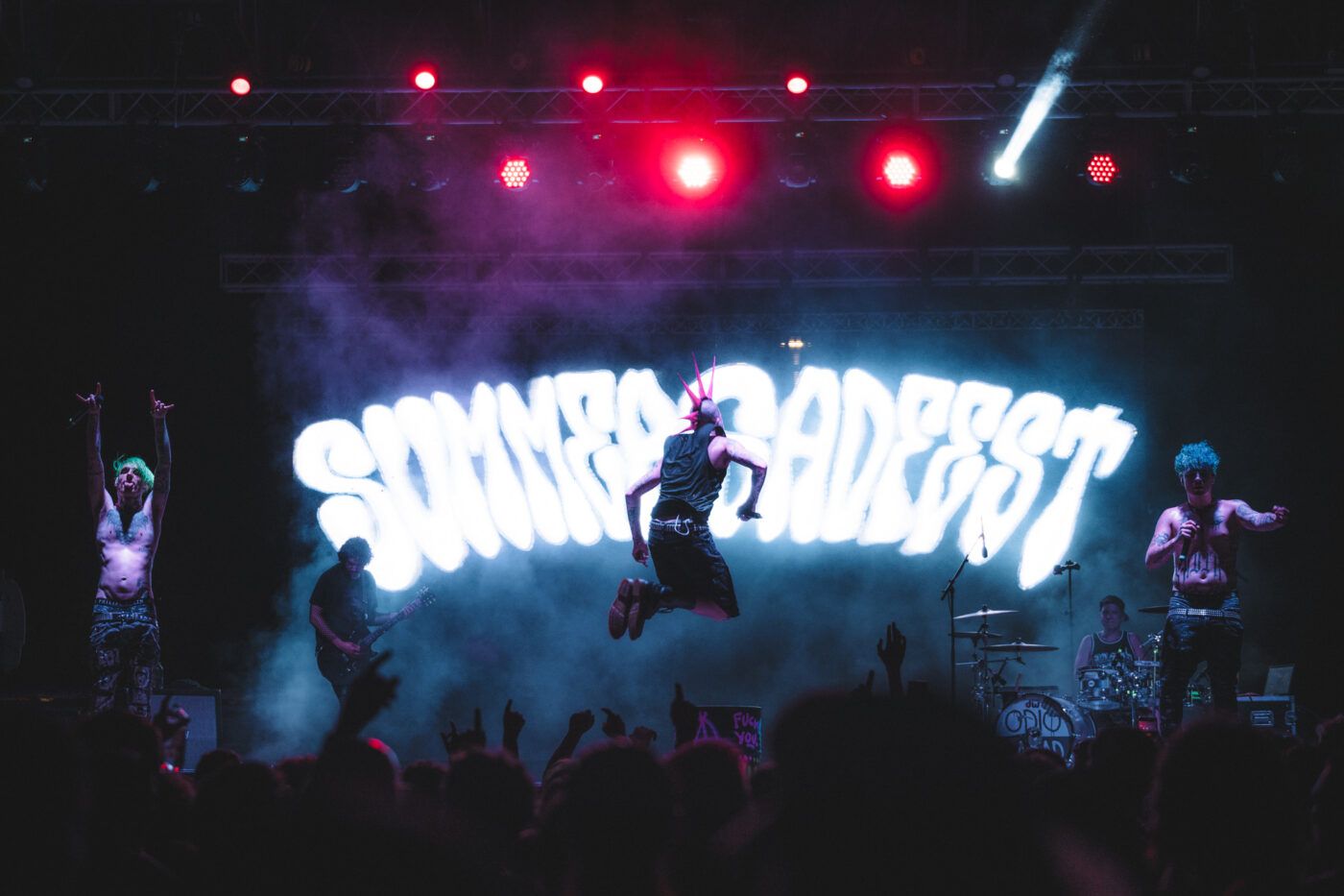 L’esordio è affidato ai Sunset Radio, band ravennate di stampo punk-rock che negli ultimi anni ha conosciuto un ritorno in auge grazie al nuovo cantate Enny e ad una decisa virata verso un pop-punk più puro. A seguire Ëgo, artista genovese già attivo dal 2016 quando scriveva rap, ma ha poi trovato nel pop punk la sua strada ideale fino all’uscita del suo secondo album Amore Splatter. Si procede con Holy Francisco, classe 2005 originario di Gela, già ospite del precedente SummerSad, noto per la sua partecipazione a programmi come X-Factor e Amici, fa risuonare nella spiaggia di Bellaria il ritornello un po’ troppo easy, ma catchy, del brano Tananai. Arriva poi il turno di Jack Out, il country boy italiano, come gli piace definirsi. Con canotta aderente, capelli giallo paglia e cappello alla texana, è un soggetto che non passa inosservato. Presenza immancabile del Summersad, migliore amico dei tre sadboys, dopo la sua esibizione singola, possiamo apprezzarlo nel feat con il trio punx, sulle note di ADDIO.