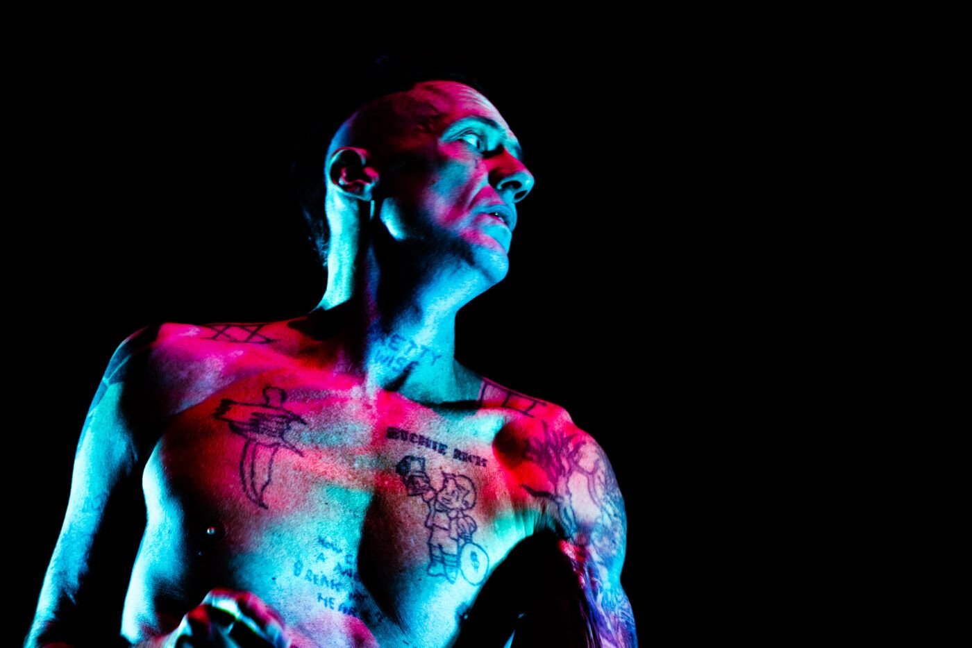 “Non piove sulla lapide, beviti queste lacrime” scrive Salmo nella canzone Miracolo, nel nuovo joint album CVLT – HELLRAISERS con Noyz Narcos. Forse non sulla lapide, ma stasera a Sequoie Music Park, presso le Caserme Rosse, Bologna, inizia a piovigginare. Il cielo che lacrima e fa la guardia poco prima che il live inizi riesce a rendere quasi cinematografico il parterre, che diventa un set composto dalle luci che vengono dal palco, pubblico di tutte le età che tiene le mani al cielo e si sgola con cori e urla, birre per terra e fumo di sigarette che si mescola nell’aria umida. Il parterre diventa un set proprio come la scenografia già presente sul palco, che vede un allestimento composto da lamiere di ferro graffittate e un enorme cancello (dal quale poi entreranno gli artisti) e oggetti di scena come una panchina, una cabina telefonica e bidoni metallici.