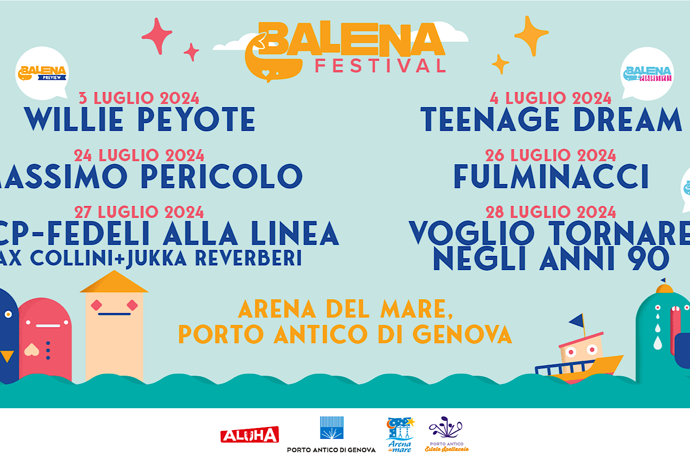Al Porto Antico di Genova torna anche quest’anno, organizzato da Aluha Eventi, il Balena Festival che al grido di “Che Bella Compagnia” ci canta “Dai su, pensateci bene: quanto è bello stare tutti insieme?“.